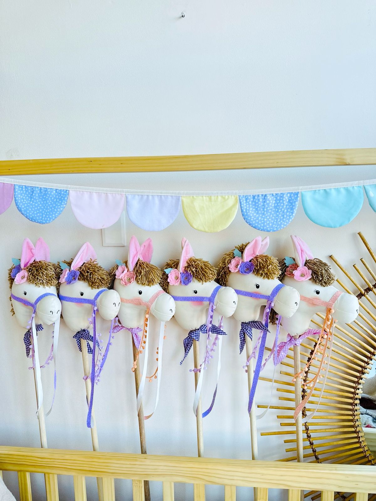 Riendas en sintético de brillos de pompo con palo de madera.