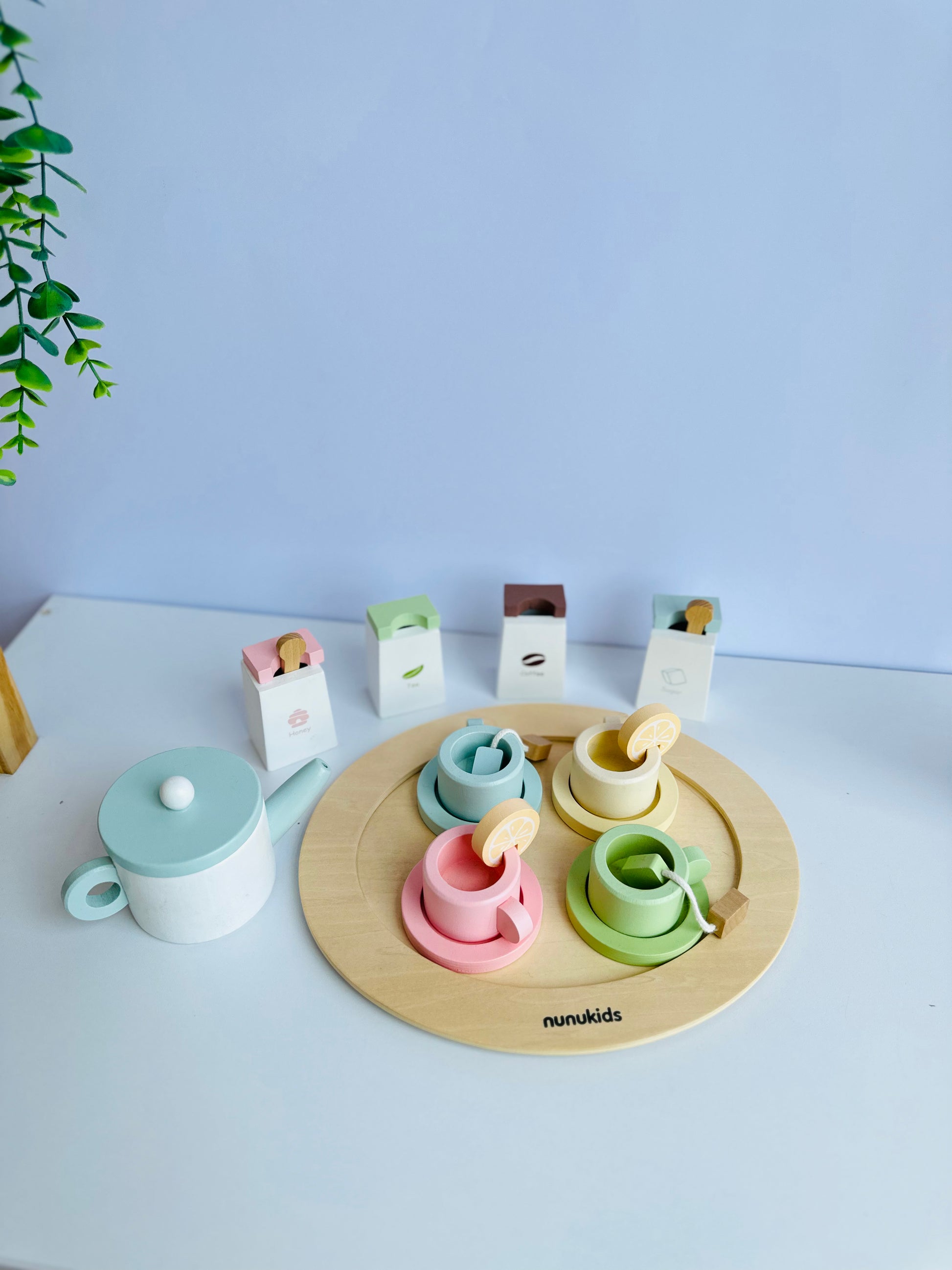 Juego de te de madera para niñas pequeñas, juego de fiesta de te para niños pequeños, juegos de 20 piezas, juegos de te de simulación, juguete.